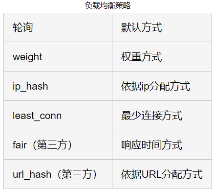 这就是最基本的负载均衡实例,但这不足以满足实际需求;目前Nginx服务器的upstream模块支持6种方式的分配: