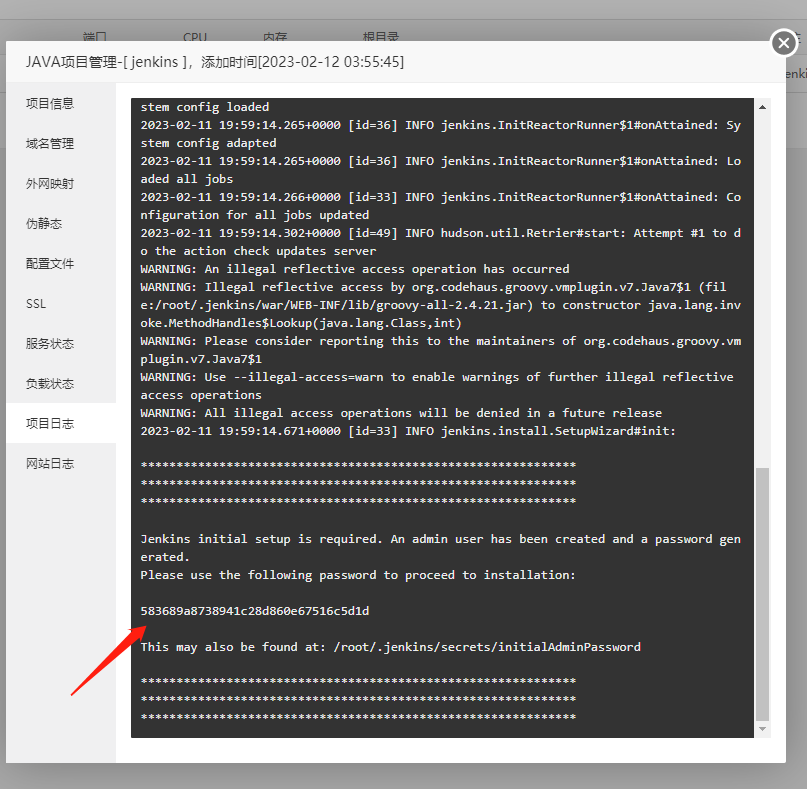 三 、运行Jenkins,启动后到日志查看解锁密码下一步会用到