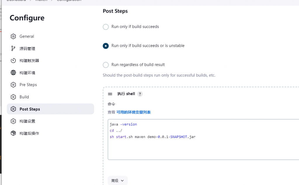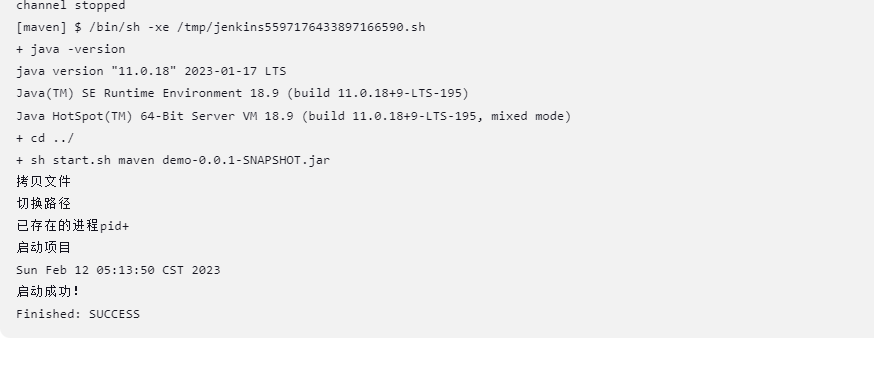 并且将 start.sh脚本放在 jenkins目录 .jenkins/workspace 下