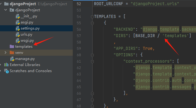 - 新建项目删除templates文件夹,并且修改setting这里的设置为[]
